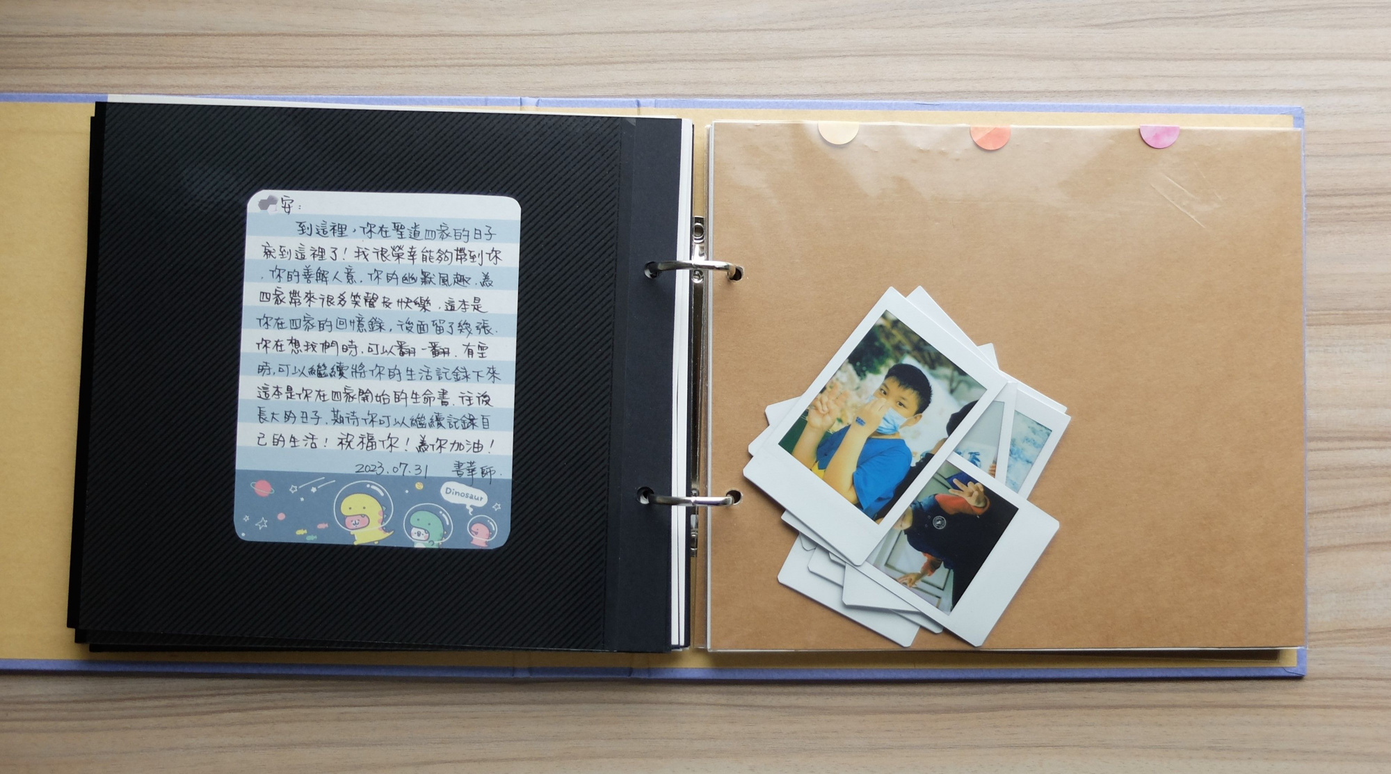 生命書翻到最後,書華老師特別留下一張張沒有黏貼上的照片,希望帶著滿滿祝福回家的安安,可以繼續在空白處寫下他的生命故事。