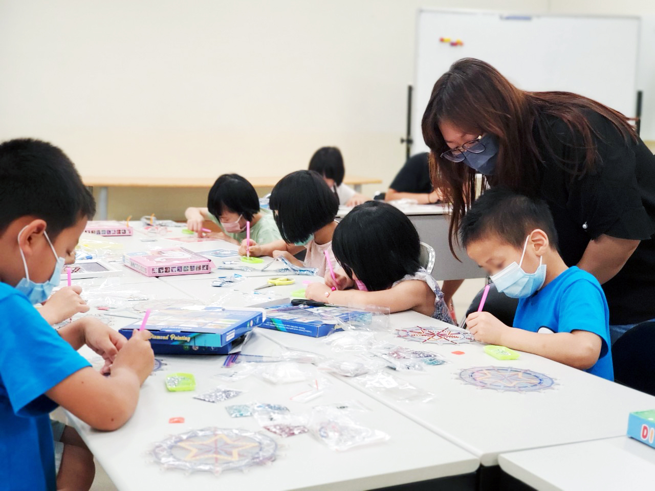 今年書華老師和璇寧老師首次開設 手作學群,在假日時與孩子們共同學習製作不同手作藝術品,有馬賽克拼貼、鑽石貼畫、蝶谷巴特…,令老師們驚喜的是,即便每次上課挑戰的作品難度越來越高,但所有孩子都能一一獨力完成個人作品。
