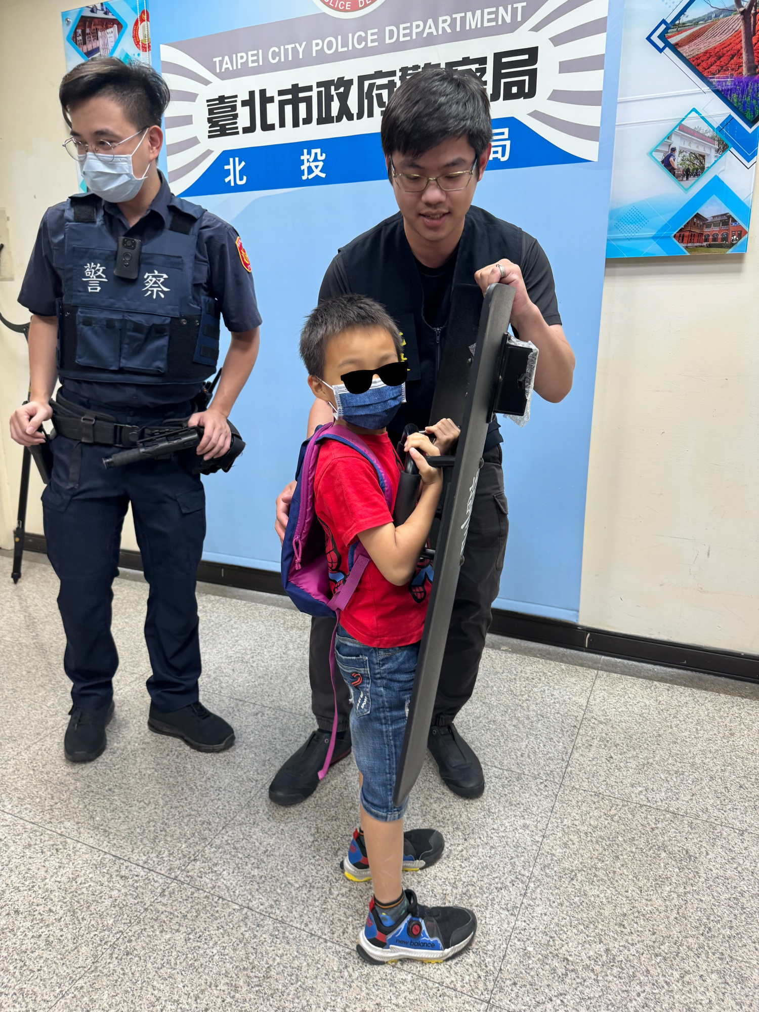 當極具重量的裝備一上身,男孩也深刻體會到平常警察叔叔執行勤務的辛苦,也私下偷偷和老師說:「警察叔叔好厲害!」