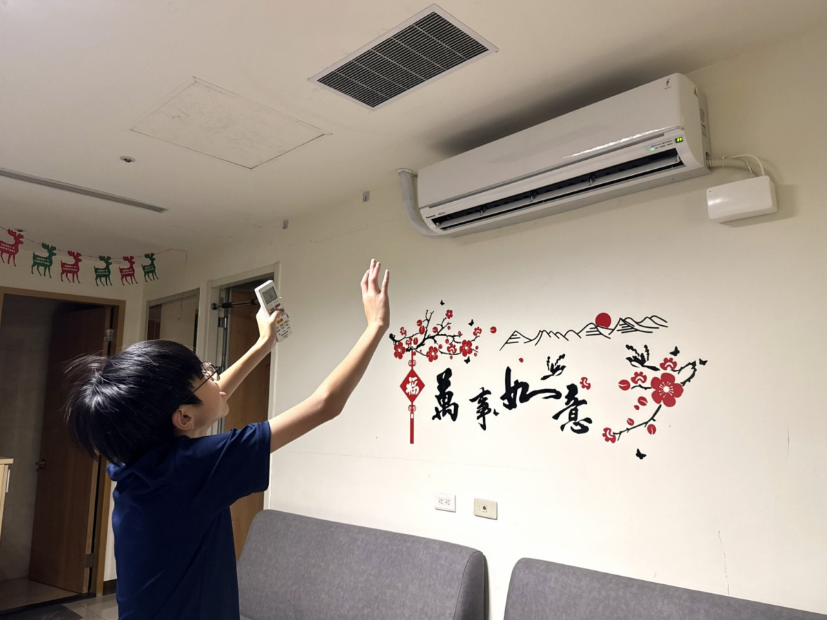 為改善夏天室內悶熱的困擾,於五個小家的客廳加裝冷氣,並調整室外機安裝位置,讓孩子們夏天不再汗流浹背,在涼爽的環境下學習成長。 - 活動百葉窗工程:改善曬衣間通風問題